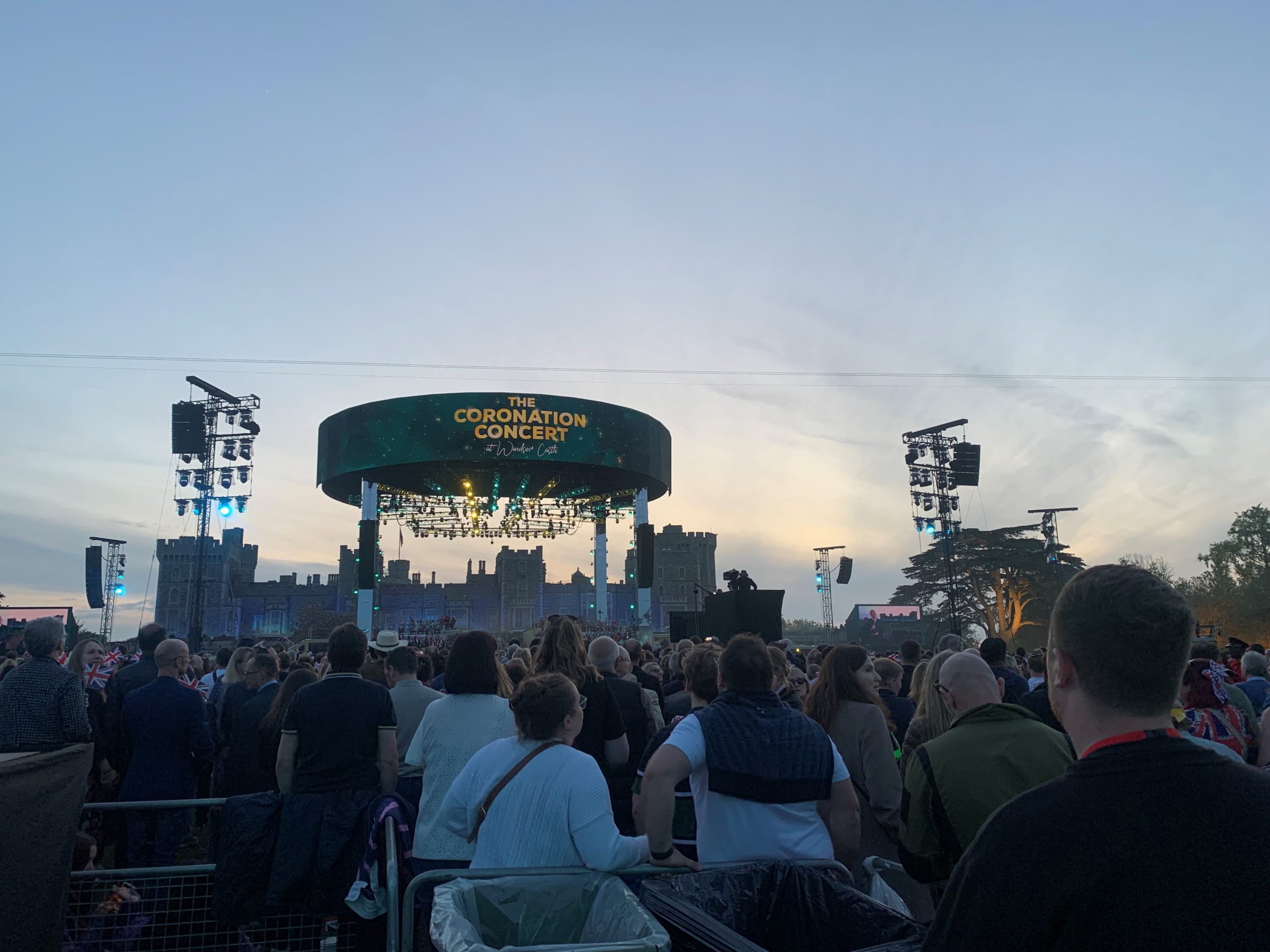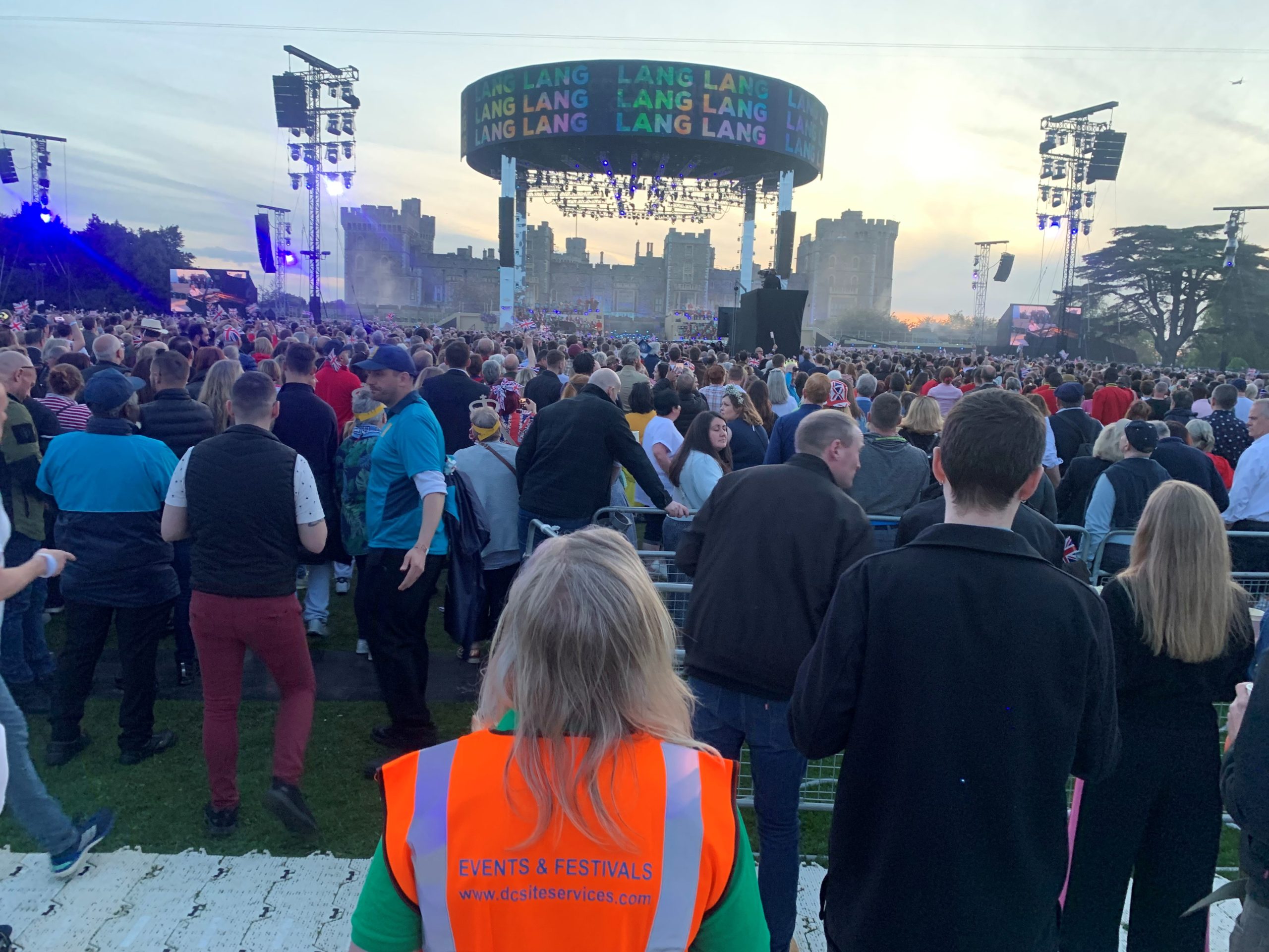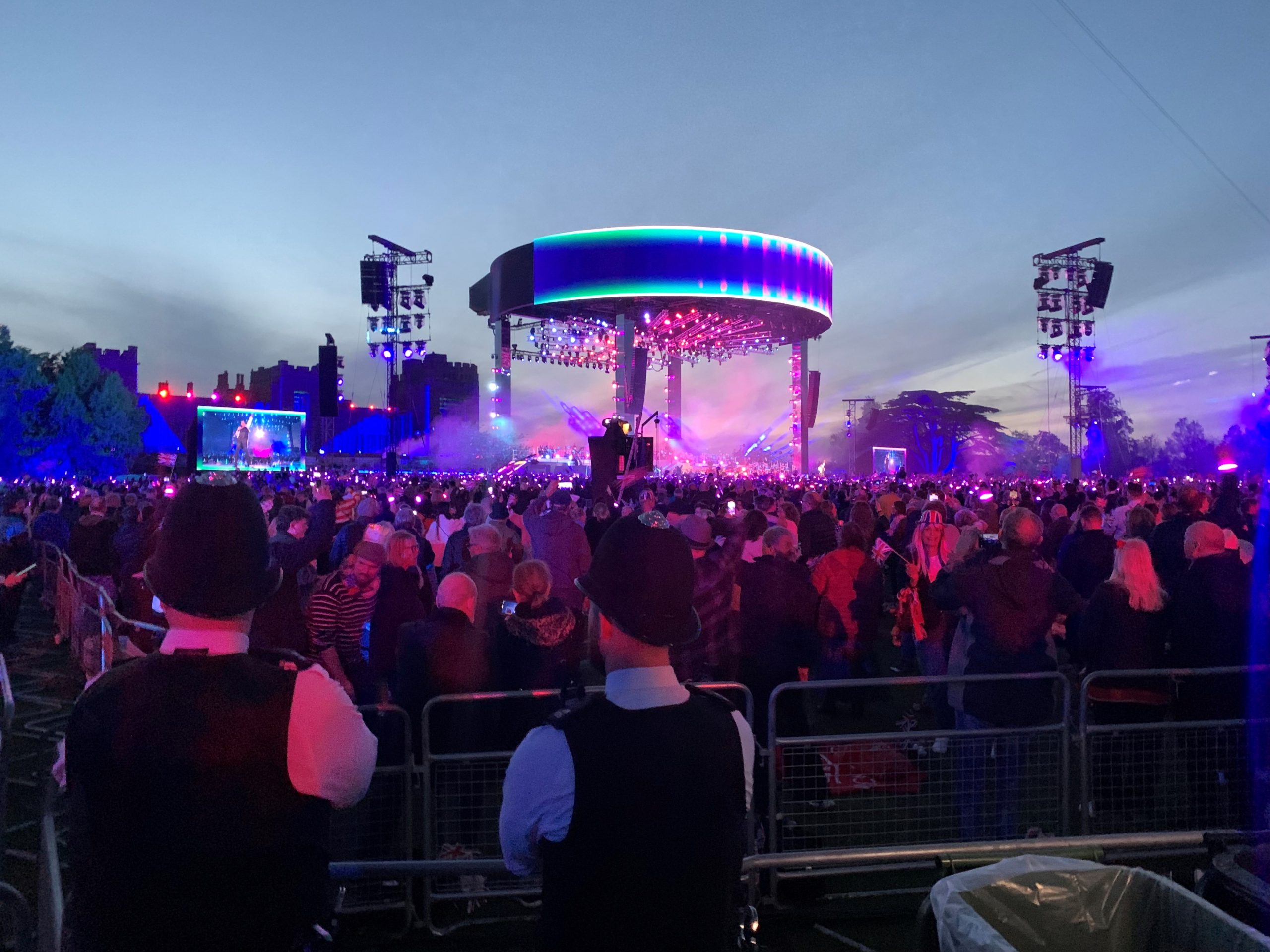 Camilla Crowd DC Tabards Stage Front Facing Picking Line Group Pic Front Facing Matt Radford Staage No One Knows Where To Look Side Facing Picking Line Stage Lit Up Stage Pre Sunset Windsor Castle