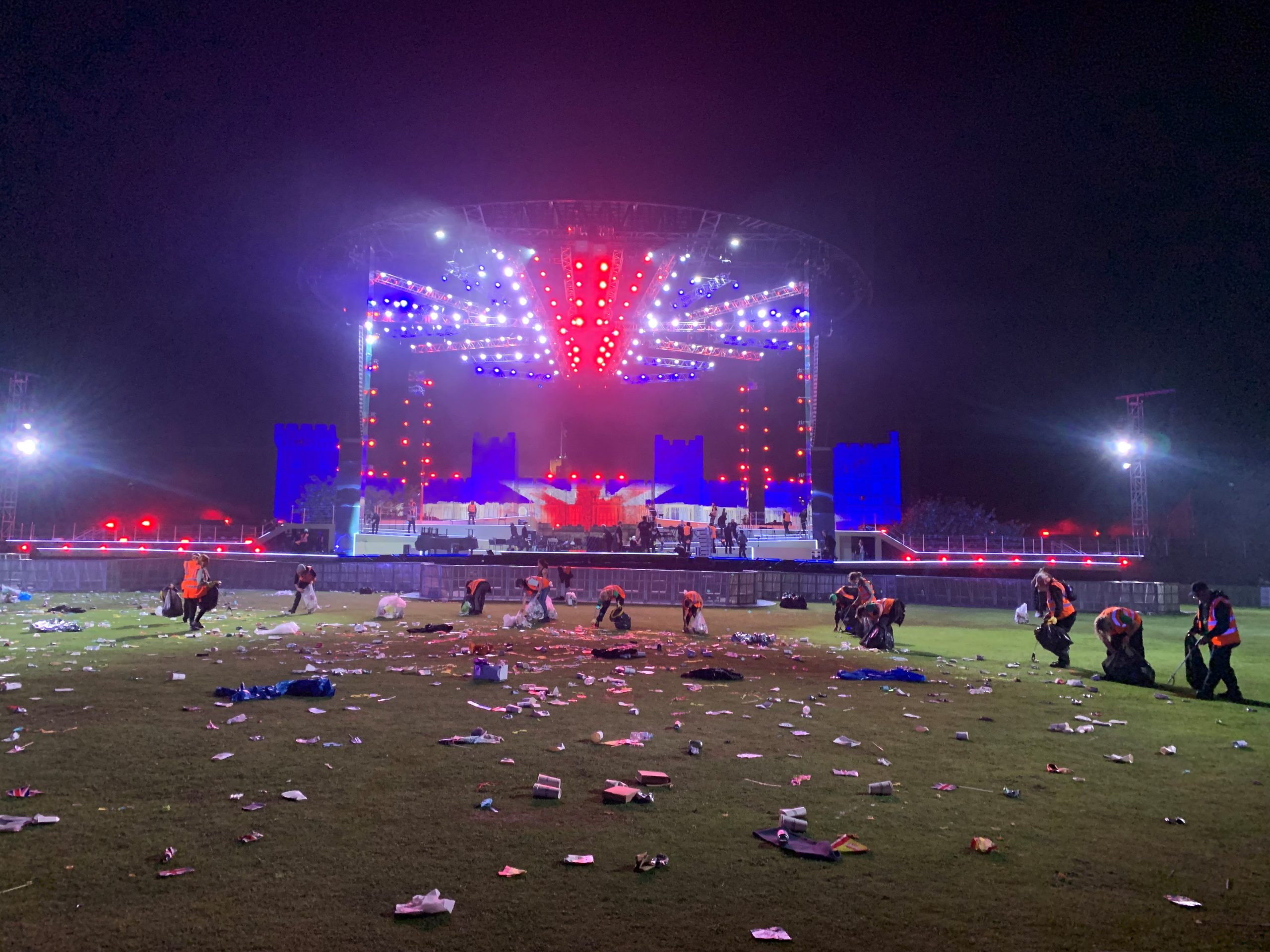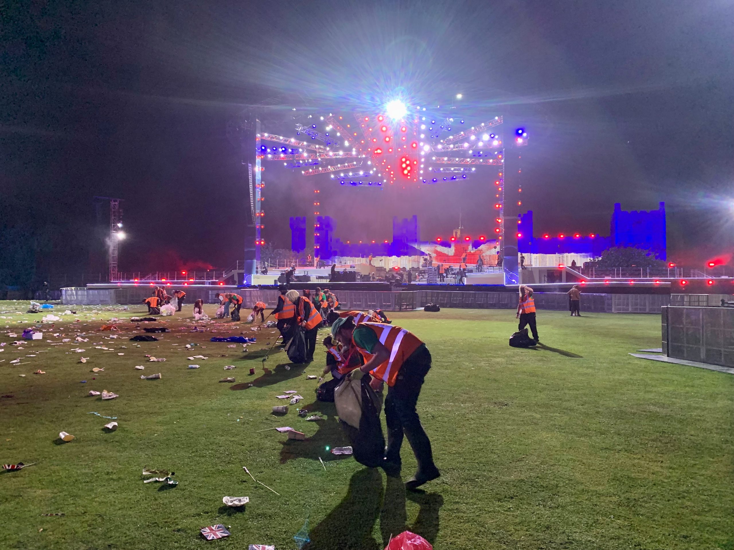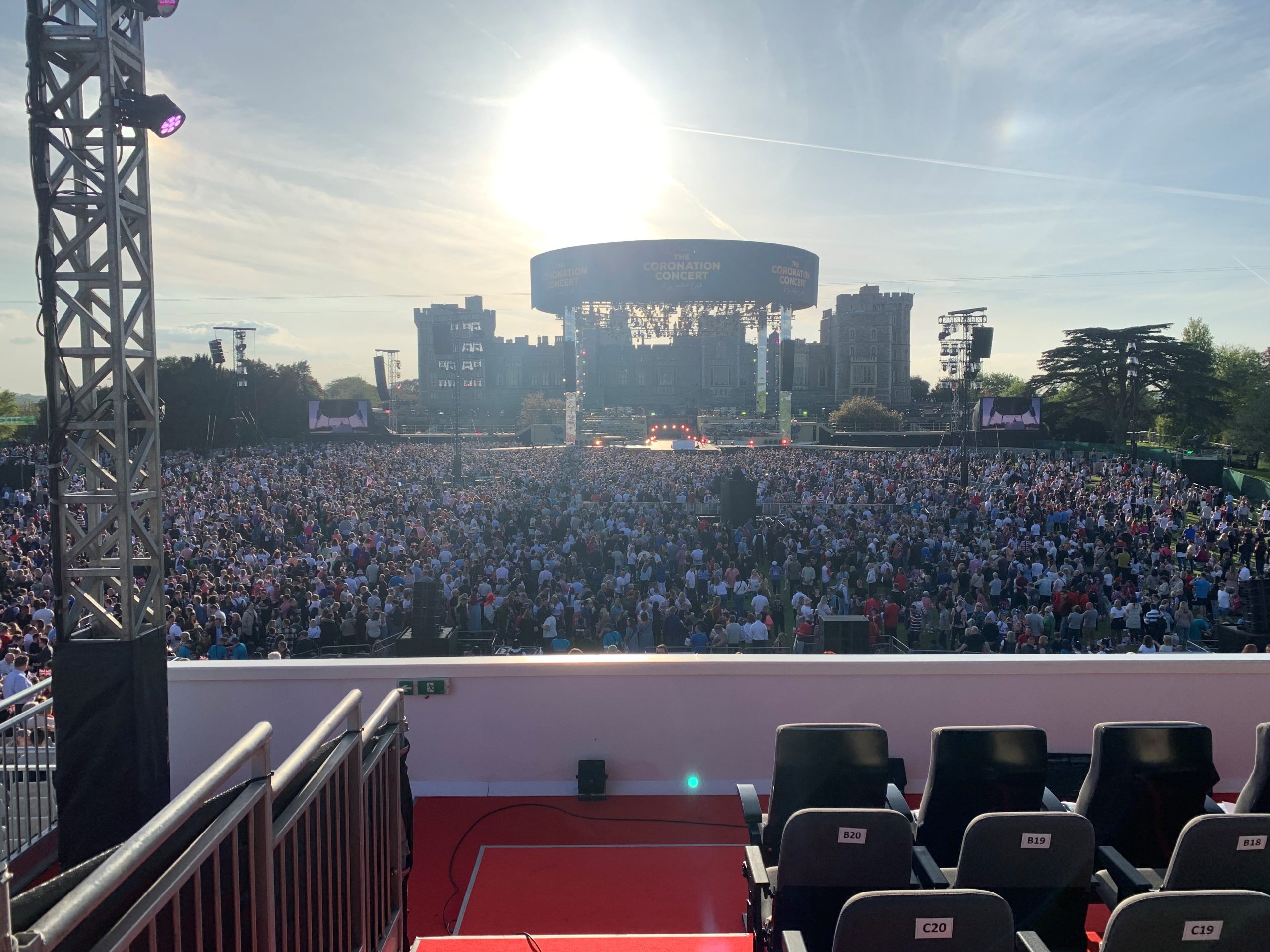 Camilla Crowd DC Tabards Stage Front Facing Picking Line Group Pic Front Facing Matt Radford Staage No One Knows Where To Look Side Facing Picking Line Stage Lit Up Stage Pre Sunset Windsor Castle