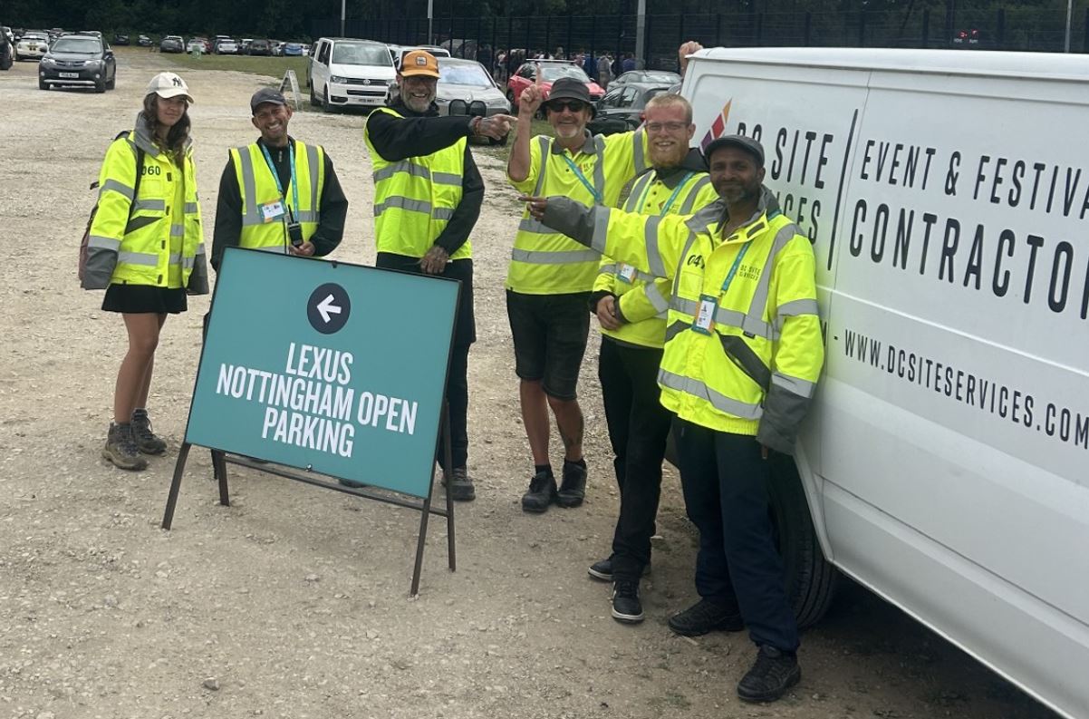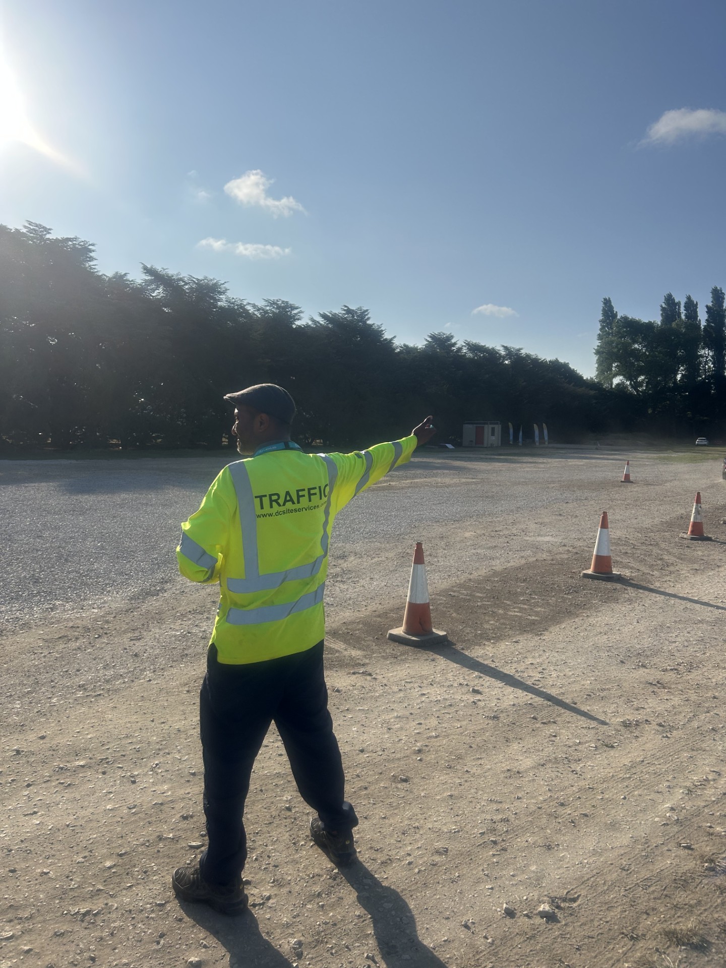 Byron Surrounded By Umbrellas Carpark Crew By DC Van And LTA Sign Directing Traffic Sign Crew By DC Van And LTA Sign Closeup